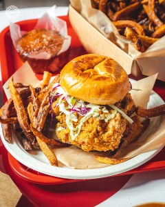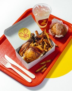 Pair them with their star sides: rice with pigeon peas, mac and cheese, cornbread, and fresh lemonade. Perfect for a casual lunch with the taste of well-thought-out comfort food.