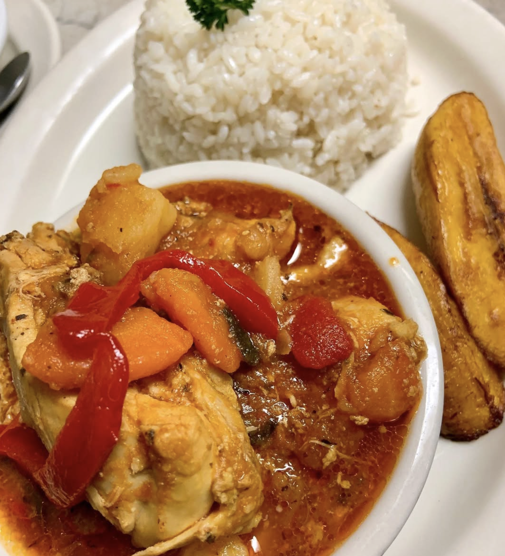 Para probar: canoa de carne molida con arroz blanco y habichuelas o fricasé de pollo con arroz y tostones.